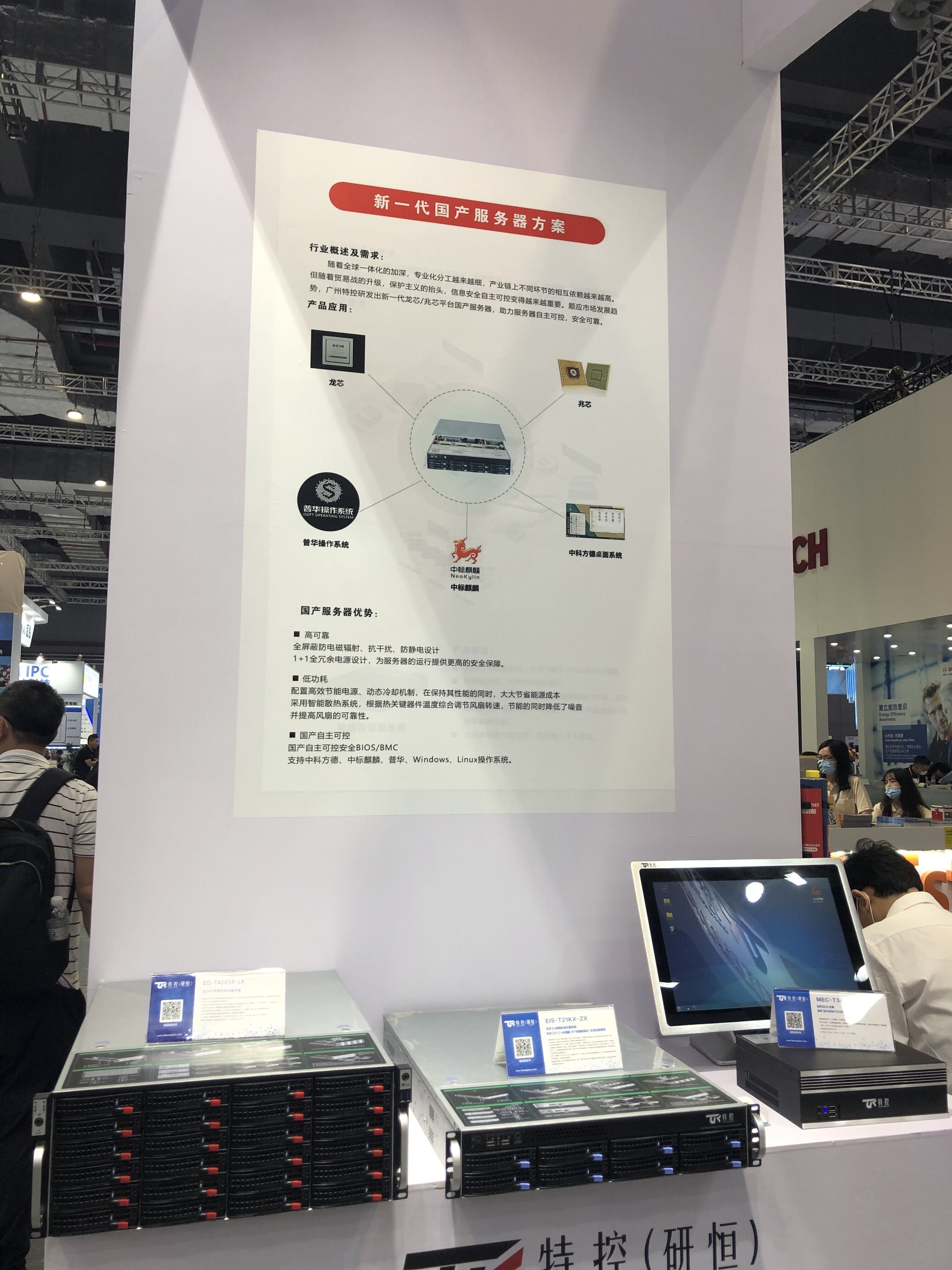 賦能“新基建”,充分展現(xiàn)中國制造力量是本屆工博會諸多高科技企業(yè)的技術(shù)路線選擇。信息基礎(chǔ)設(shè)施建設(shè)是新基建發(fā)展的重要基石之一,而國產(chǎn)化和自主可控則是構(gòu)建安全可控信息技術(shù)體系的防線。特控(研恒)積極關(guān)注中央和地方政策,收集并分析相關(guān)信息,基于全平臺的計算機(jī)技術(shù)展開研發(fā),推出了新一代國產(chǎn)服務(wù)器解決方案,助力國產(chǎn)IT的生態(tài)建設(shè),為國家信息安全早日實現(xiàn)自主可控進(jìn)程貢獻(xiàn)力量。