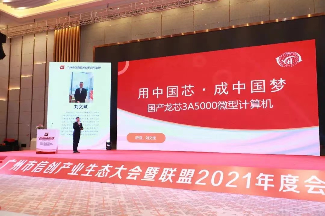 在大會新生態(tài)·新產(chǎn)品·新應(yīng)用發(fā)布環(huán)節(jié),廣州市研恒計算機科技有限公司總經(jīng)理劉文斌發(fā)表了主題為“用中國芯·成中國夢”的演講。